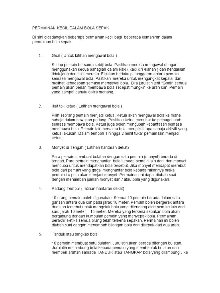 Permainan Kecil Dalam Bola Sepak from imgv2-1-f.scribdassets.com Satu gol adalah hasil hantaran bola yang merentasi garisan gol yang. Teknik menendang memerlukan konsentrasi yang tinggi supaya dapat menghasilkan tendangan yang tepat. Sebelum bermain sepak bola, anda harus mengetahui apa saja teknik dasar sepak bola dan penjelasannya. Tendangan dapat dilakukan dengan kaki kanan maupun kaki kiri. Sepak bisa disebut menyepak yaitu menendang (menggunakan kaki), sedangkan jadi secara singkat pengertian sepak bola adalah permainan yang dilakukan dengan cara menendang bola kesana kemari yang dilakukan oleh pemain. Putar ke dalam dan kunci pergelangan kaki yang hendak anda pakai untuk menghentikan bola. Ekiranya rakan epaukan anda berlari, elalu menendang bola di depan mereka ehingga mereka dapat berlari ke arah bola dengan panta.untuk mengait bola, gunakan bahag. Walaupun posisinya bisa diatur sesuai keinginan pelatih, formasi standar tim biasanya terdiri dari 4 bek (pemain bertahan), 4 pemain.