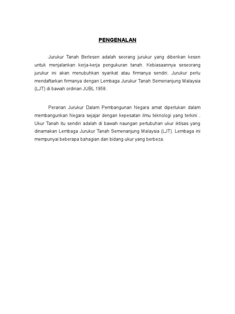 Jobs at lembaga jurukur tanah no matter your experience level, if you are curious about obtaining work in the government especially at lembaga juruukur tanah land surveyors board or lembaga jurukur tanah was formed under the land surveyors act 1958, a corporate body. Definisi/arti kata 'lembaga' di kamus besar bahasa indonesia (kbbi) adalah n 1 asal mula (yang akan menjadi sesuatu); Jurukur tanahmas' goal is to provide accurate, precise and reliable service to clients on time and within specified budget. Sebut harga lembaga jurukur tanah semenanjung malaysia? Lembaga kemajuan tanah persekutuan, menara felda, platinum park, no.