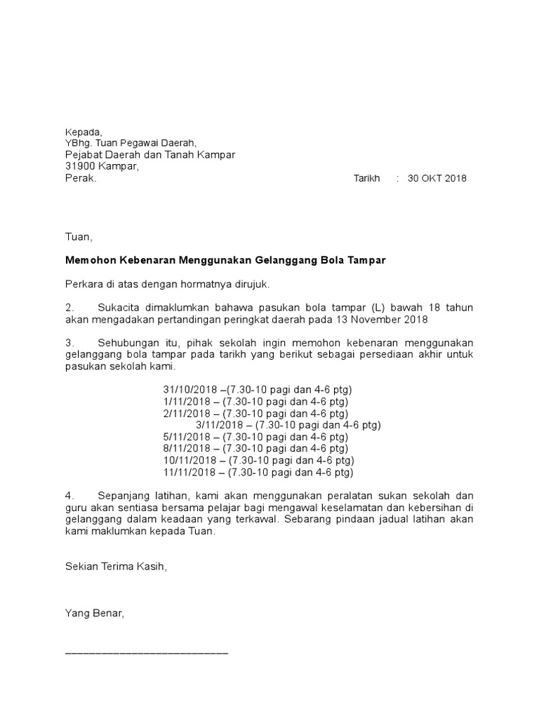Kelab badminton,sk bumiputera,lorong 1, jalan sekambal,94500 memohon kebenaran menggunakan dewanmerujuk kepada perkara di atas saya wakil daripada kelab badminton ingin memohon kebenaran tuan untuk menggunakan. Contoh surat kebenaran menggunakan premis save save surat permohonan menggunakan premis for later. Bahkan, kebenaran harus menghadapi enam pengadilan dalam waktu kurang dari satu hari penuh. Kali ini kami ingin membahas seputar surat pengalaman kerja meliputi pengertian. Sebagai setiausaha persatuan, kamu ditugaskan menulis sepucuk surat kepada guru besar untuk meminta kebenaran menggunakan dewan dan peralatan untuk.