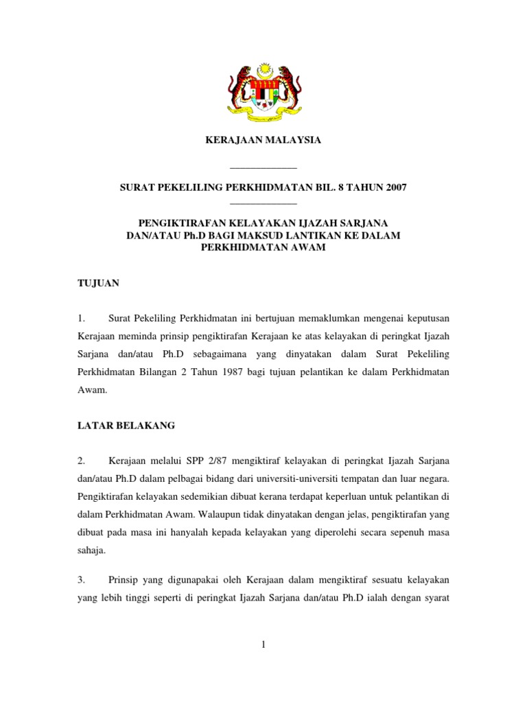 Kerajaan Malaysia Pekeliling Perkhidmatan Pekeliling Perkhidmatan Bilangan 7 Tahun 2011 Tujuan Pdf Document from demo.fdokumen.site Kuatkuasa pelaksanaan pemakaian pekeliling perkhidmatan bil. Dengan berkuatkuasanya pekeliling perkhidmatan ini, pekeliling perkhidmatan bilangan 4 tahun 2001, surat pekeliling perkhidmatan bilangan 13 tahun 2007 dan surat pekeliling perkhidmatan. You are the universe in ecstatic motion. Pekeliling perkhidmatan bilangan 10 tahun 2006 penetapan semula nilai taraf baru bagi. Penjumudan skim perkhidmatan juruteknik dan pindaan skim perkhidmatan pelukis pelan, penolong jurutera, penolong pegawai seni bina dan penolong juruukur bahan. The butterfly counts not months but moments, and has time enough. Pekeliling perkhidmatan bilangan 17 tahun 2007. Pekeliling perkhidmatan bilangan 5 tahun 2019.