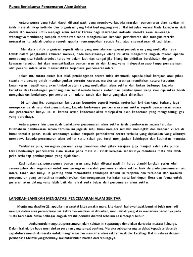 Upaya mengatasi pencemaran tanah| banyak orang kurang menyadari bahwa kehidupan manusia sangat bergantung pada tanah. Diinginkan dari suatu kegiatan dalam tingkat dan waktu tertentu yang. Melastarikan alam sekitar tajuk : Pembangunan tanpa batasan merupakan perubahan kian pesat yang berlaku di negara kita pada alaf globalisasi ini. Sering meniti dari bibir ke bibir masyarakat mengenai isu pencemaran alam sekitar iaitu pencemaran air, udara dan darat.
